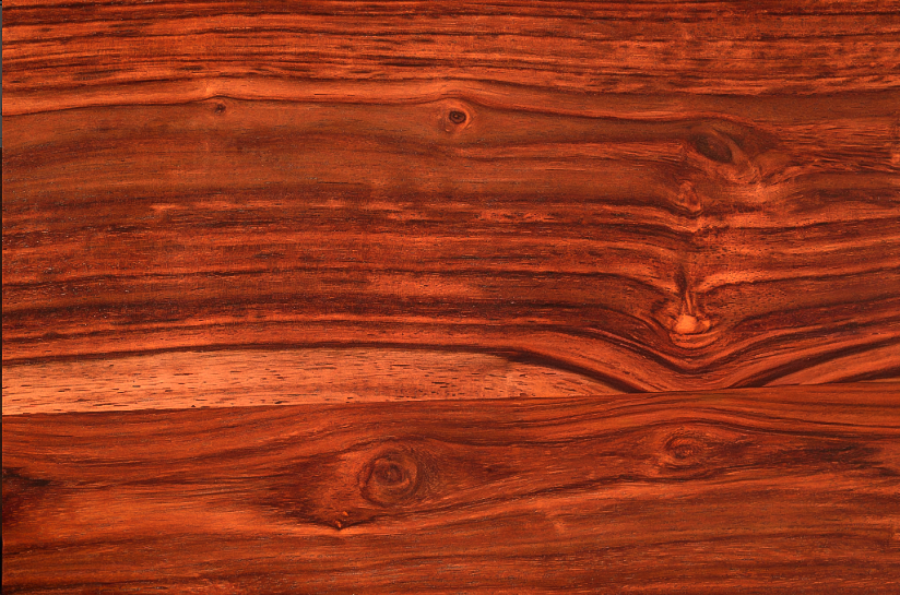 Grano entrelazado y aromático, con tonos púrpura-rojizos profundos. Muy durable, resistente a la deformación y con excelente pulido. Guitarras, mangos de cuchillos y muebles de alta gama. Su exotismo lo hace perfecto para piezas artísticas y decorativas.