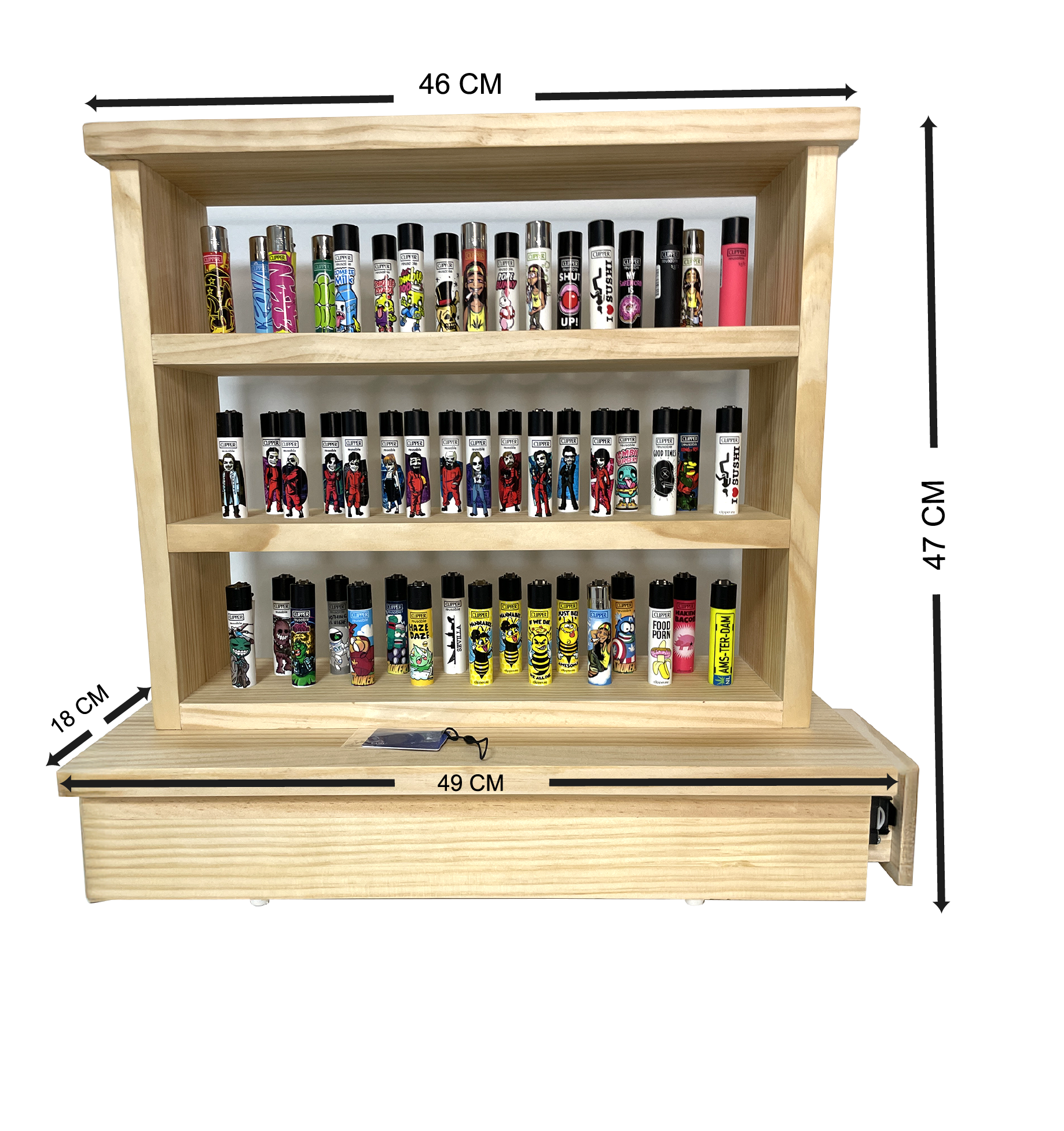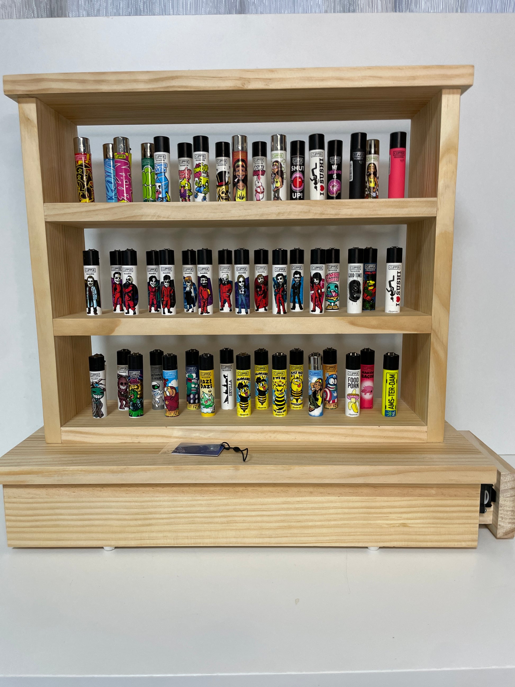 đź§Ż Capacidad de colecciĂłn – Diseño optimizado para 51 mecheros Clipper (o similares). ExposiciĂłn impecable con perfil de galerĂa.