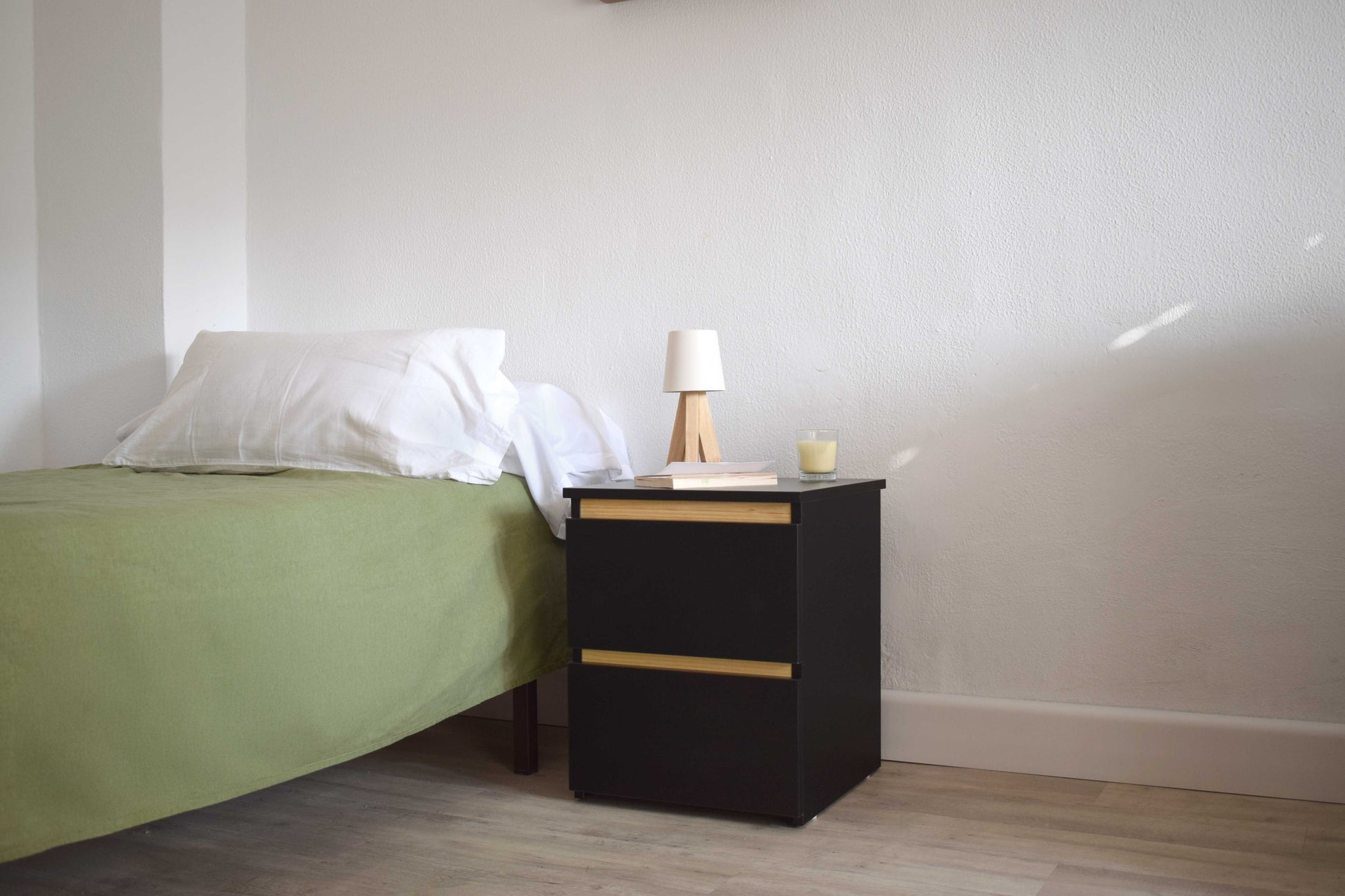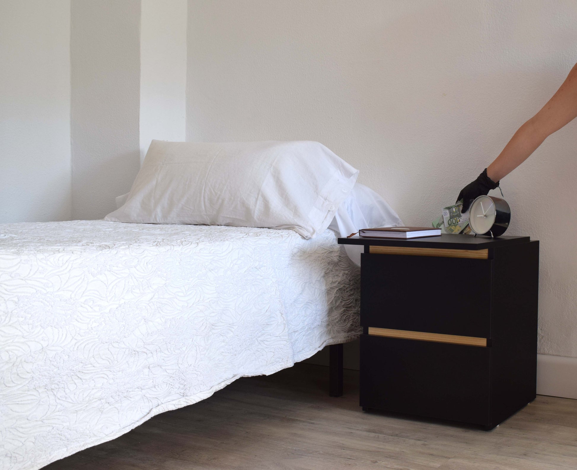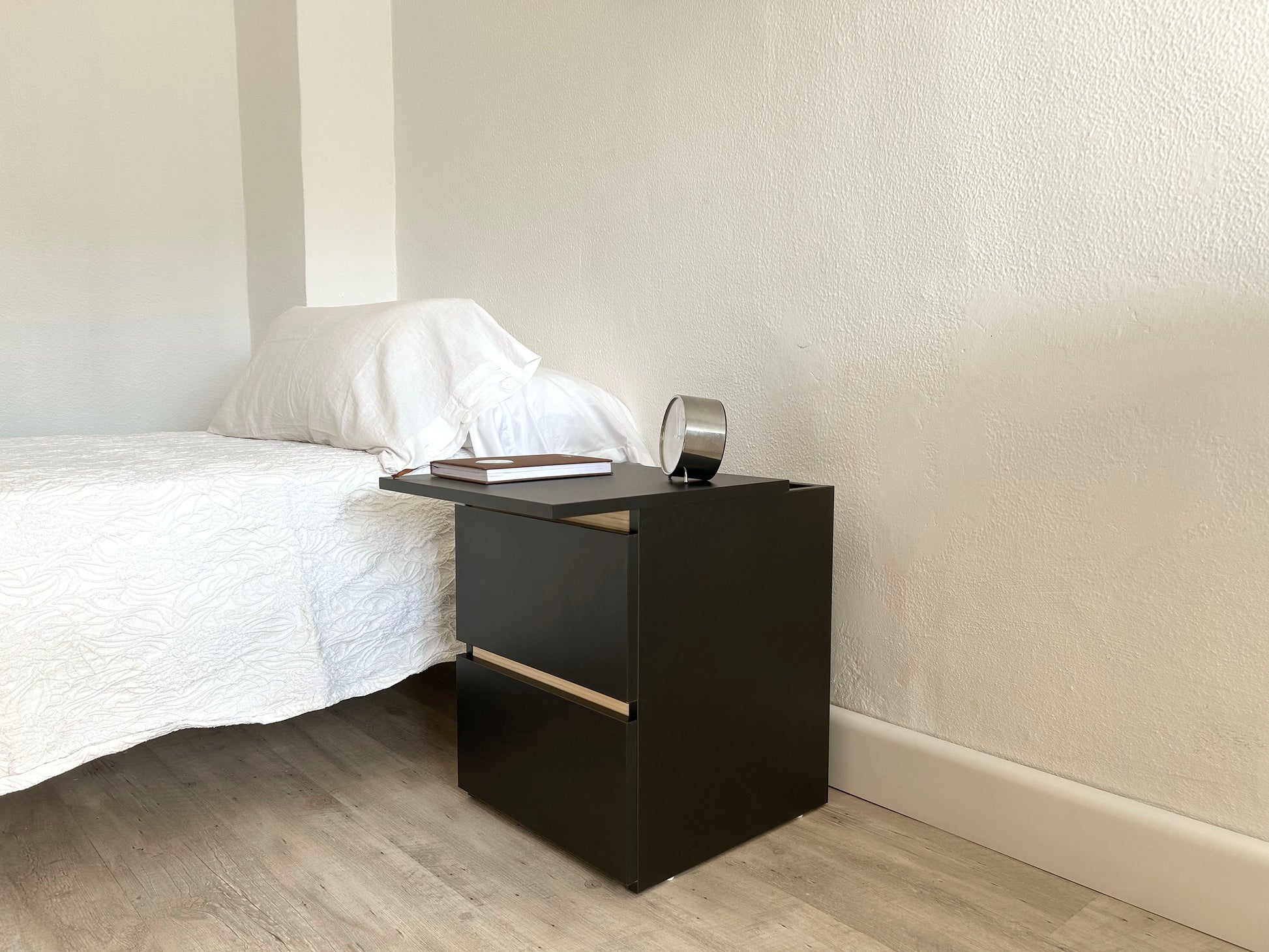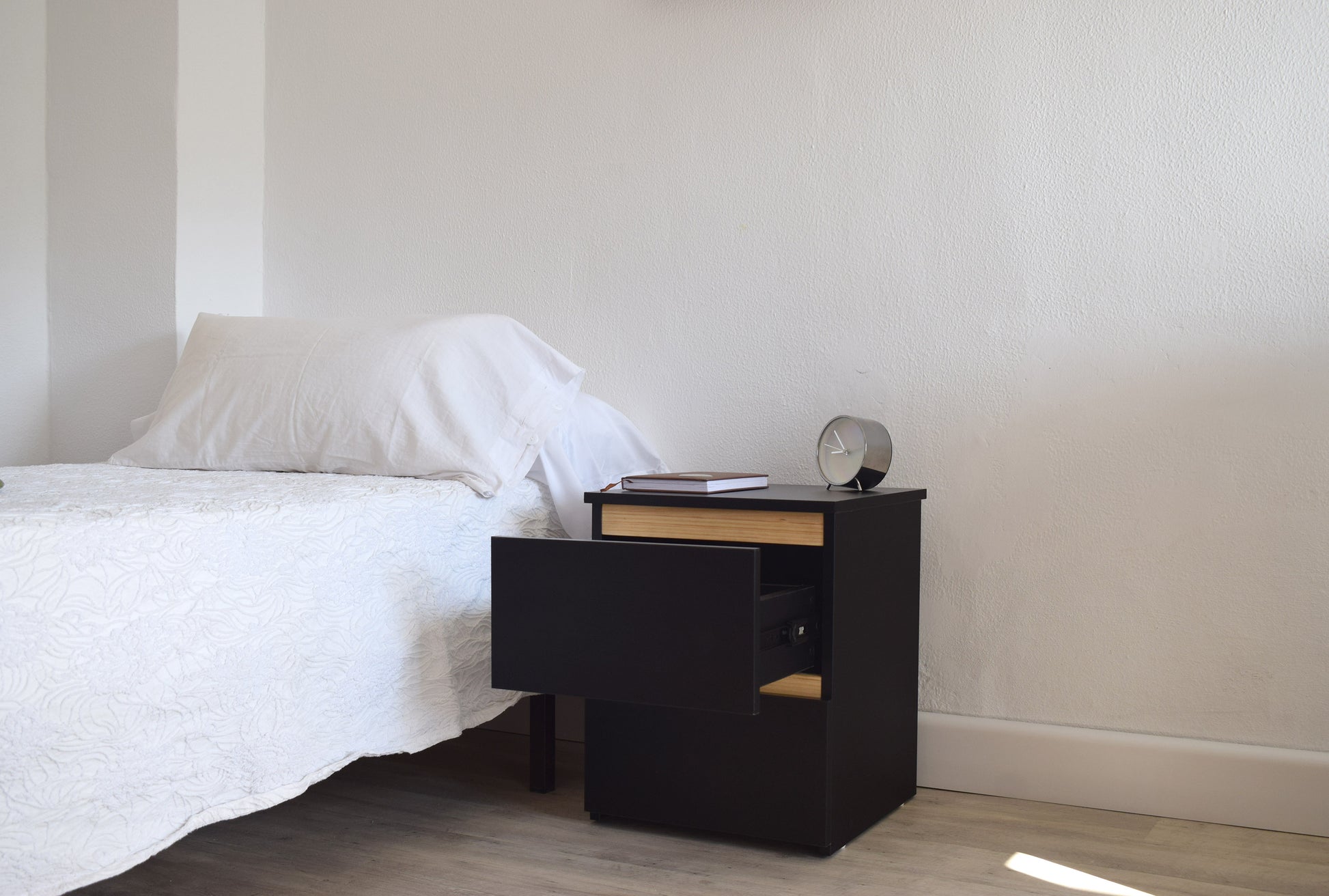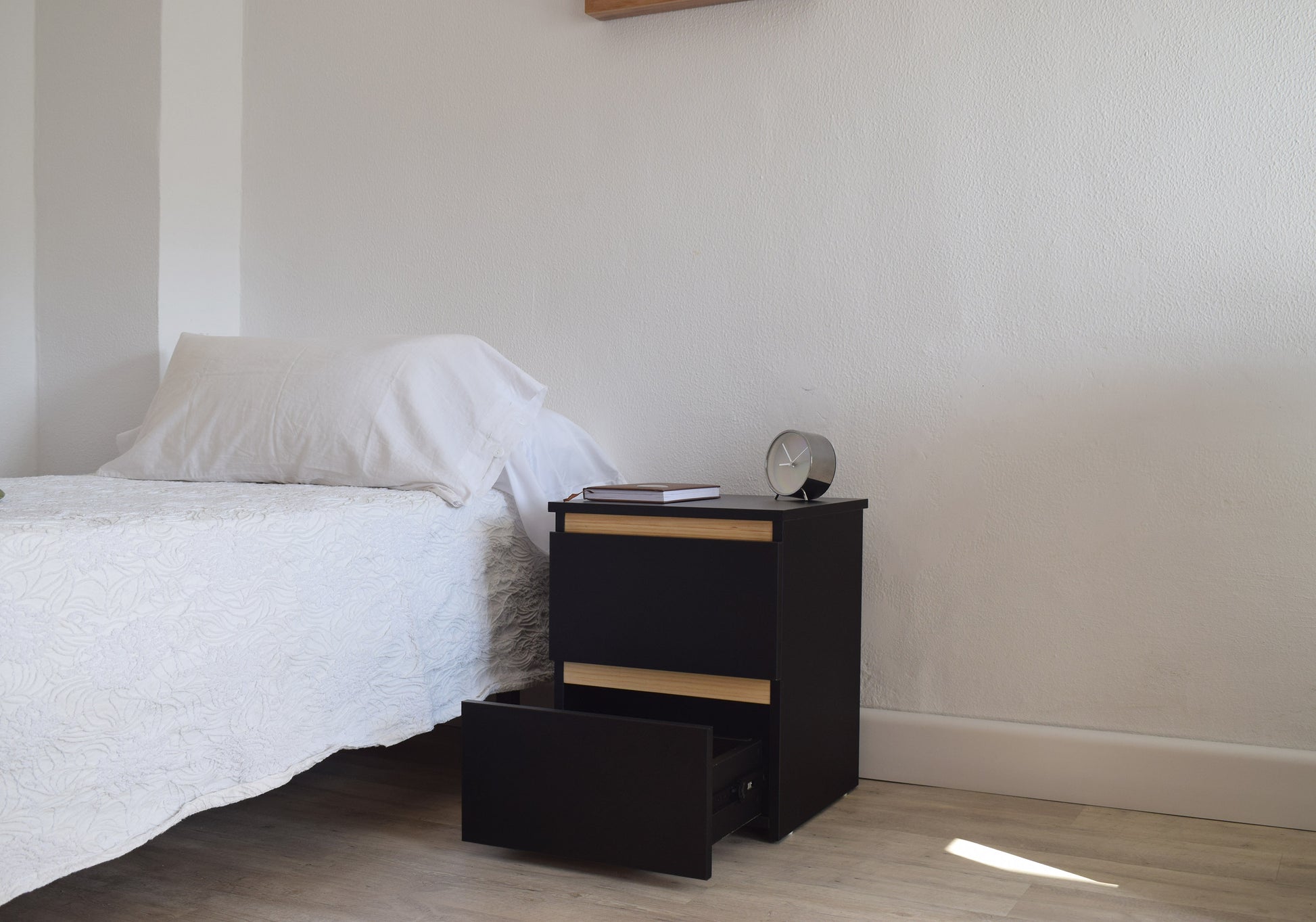 🖤 Acabado Black de perfil bajo – Cuerpo en melamina duradera con acabado negro elegante, detalles en pino natural y herrajes premium para máxima fiabilidad.