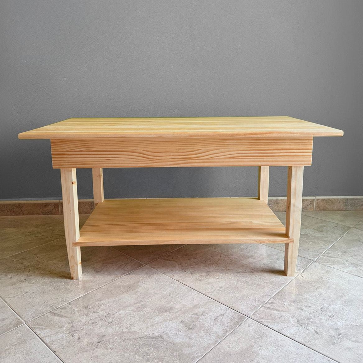 🪵 Diseño moderno y funcional en pino – Fabricada 100% en madera maciza de pino, combina estética sofisticada con una estructura robusta para uso intensivo en salón, oficina o estudio. Perfecta como mesa de café ☕, mesa de té 🍵 o soporte TV 📺.